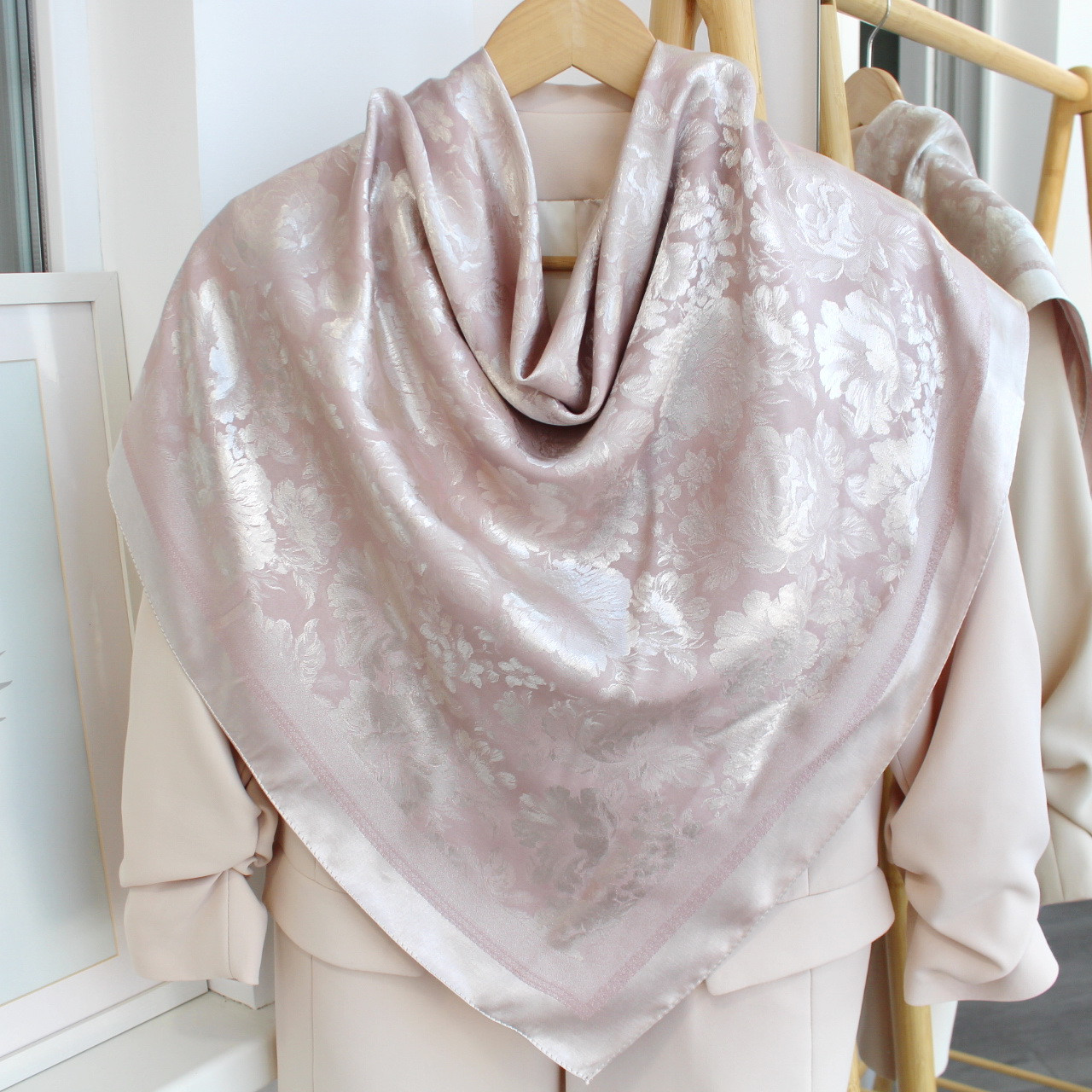Розкішна шовкова хустка — це втілення витонченості, жіночності та стилю. Виготовлена зі штучного шовку, вона має надзвичайно м’яку, гладку текстуру та природний блиск, який красиво переливається на світлі. Така хустка приємно лягає на шкіру, не електризується та дарує відчуття легкості й комфорту.
